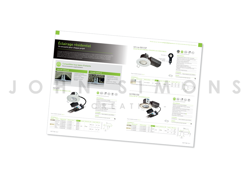 Producing in-house material for a lighting company including POS; promotional materials and technical leaflets as well as the annual 450 page catalogue.