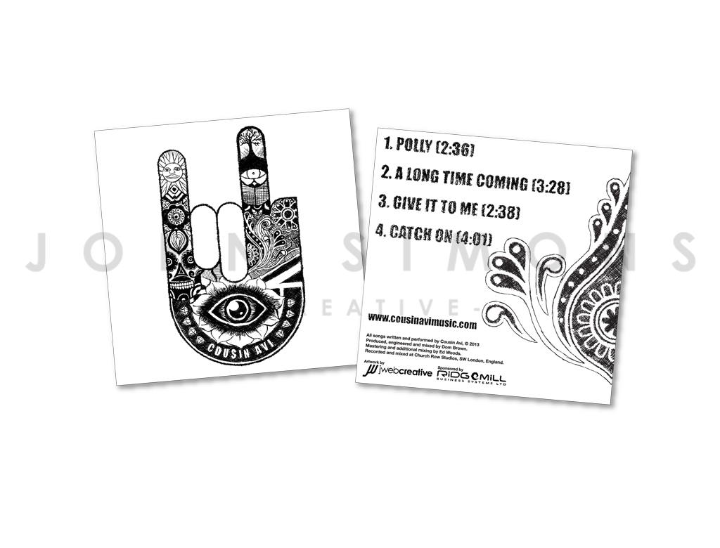 Branding | Marketing Collateral Cousin Avi Cousin Avi – Music Band To produce a hand-rendered logo design with a paisley/henna feel for a local music band. This was followed up with a design for a CD wallet and CD face as shown below. Back to Portfolio